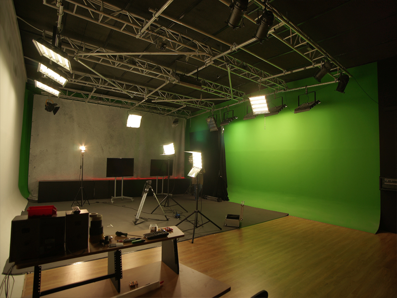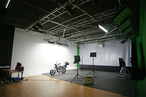 Zona Sinfín color Chroma Verde y zona Sinfín color Blanco. Zona de Fotografía con mecanismo de ejes y cadenas para rollos de fondo fotográfico. Por su tamaño versátil el más utilizado para spots de televisión y videoclips. Para programas de televisión en directo, autopromos con incrustación de la imagen en tiempo real y capacidad para meter un decorado real. Muy versatil con techos instalados con parrillas trush para colgar todo tipo de decorados e iluminación, preparado todo con instalación DMX. Insonorizado y acondicionado acústicamente para poder realizar cualquier tipo de grabación con alta calidad.