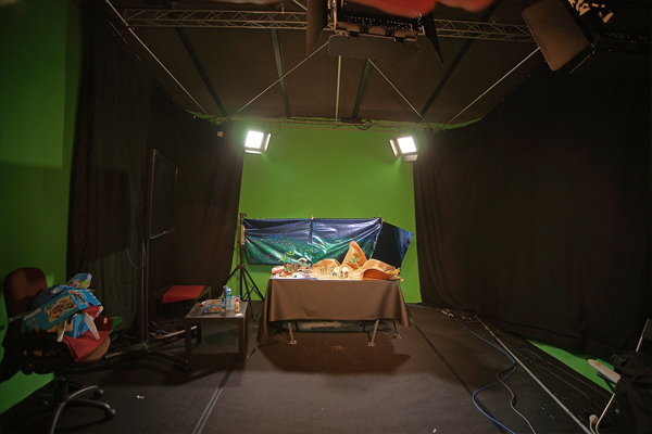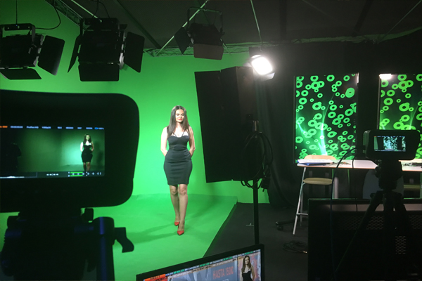 Zona sinfín color Chroma Verde. Cámaras robotizadas e incrustación en tiempo real. Perfecto para programas de televisión en directo, autopromos con incrustación de la imagen en tiempo real. Muy versatil con techos instalados con parrillas trush para colgar todo tipo de decorados e iluminación, preparado todo con instalación DMX. Insonorizado y acondicionado acústicamente para poder realizar cualquier tipo de grabación con alta calidad.